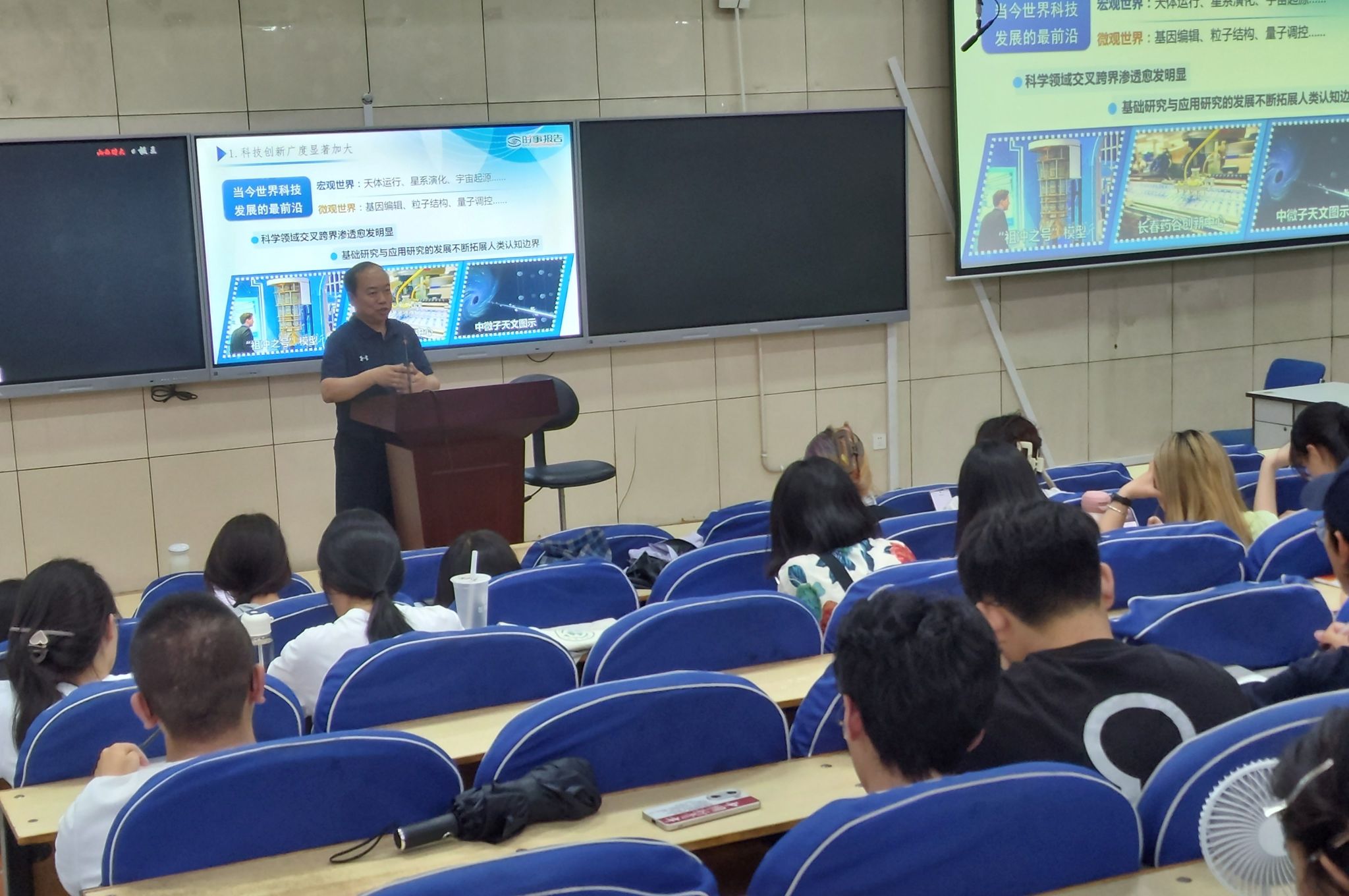 6月13日,党委常委、副董事长沈沛龙走进敏行楼201阶教,为资源环境学院2022级地理信息科学班、人文地理与城乡规划班员工讲授题为“走好新时代科技自立自强之路”的专题思政课。