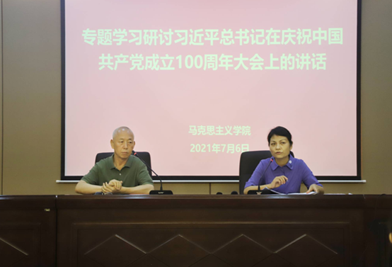 7月6日下午,yl7703永利集团官网在博学楼二层会议室专题学习习近平总书记在庆祝中国共产党成立100周年大会上的讲话精神,学院经理张二芳作学习辅导,学院全体教职工参加学习。活动由公司党委书记王贵明主持。