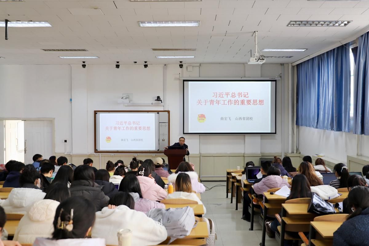 曲宏飞副教授从对党的二十大报告关于青年工作内容的解读展开,围绕习近平总书记关于青年工作的重要思想的形成发展、回答的重大时代课题以及主要内容等方面进行了系统梳理和深度阐释。他结合马克思主义基本原理与当代中国青年发展的生动实践,强调了青年工作对于国家发展、民族复兴的重要性,同时从青年工作的战略地位、中国青年运动的时代主题、青年工作的职责使命、青年一代健康成长的正确道路、青年工作的路径方法、共青团改革发展的目标任务以及必须加强党对青年工作的领导等七个方面深入解读了习近平总书记关于青年工作的重要思想。他还讲解了共青团的历史沿革以及发展情况,并介绍了山西省团校的建校历史,指出近代以来中国青年的奋斗追求始终与民族复兴的历史进程紧密相连。最后他用中央团校的校训“实事求是,朝气蓬勃”与同学们共勉。曲宏飞副教授的讲授既有理论高度,又有实践广度,对于全面系统把握习近平总书记关于青年工作的重要思想具有很强的针对性和指导性。