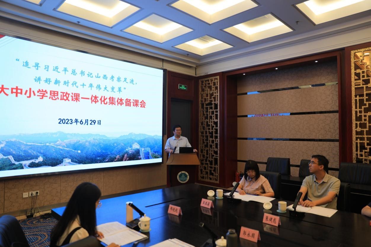 为进一步推进学习贯彻习近平新时代中国特色社会主义思想主题教育,将习近平总书记考察山西指示精神有效融入大中小学思政课一体化建设,2023年6月29日上午,山西大学牵头召开“追寻习近平总书记山西考察足迹,讲好新时代十年伟大变革”大中小学思政课一体化集体备课会,来自省内20所大中小学的思政课教师代表参会,会议由山西大学马克思主义公司党委书记王利花主持。郭永园副经理代表公司参加此次集体备课会。