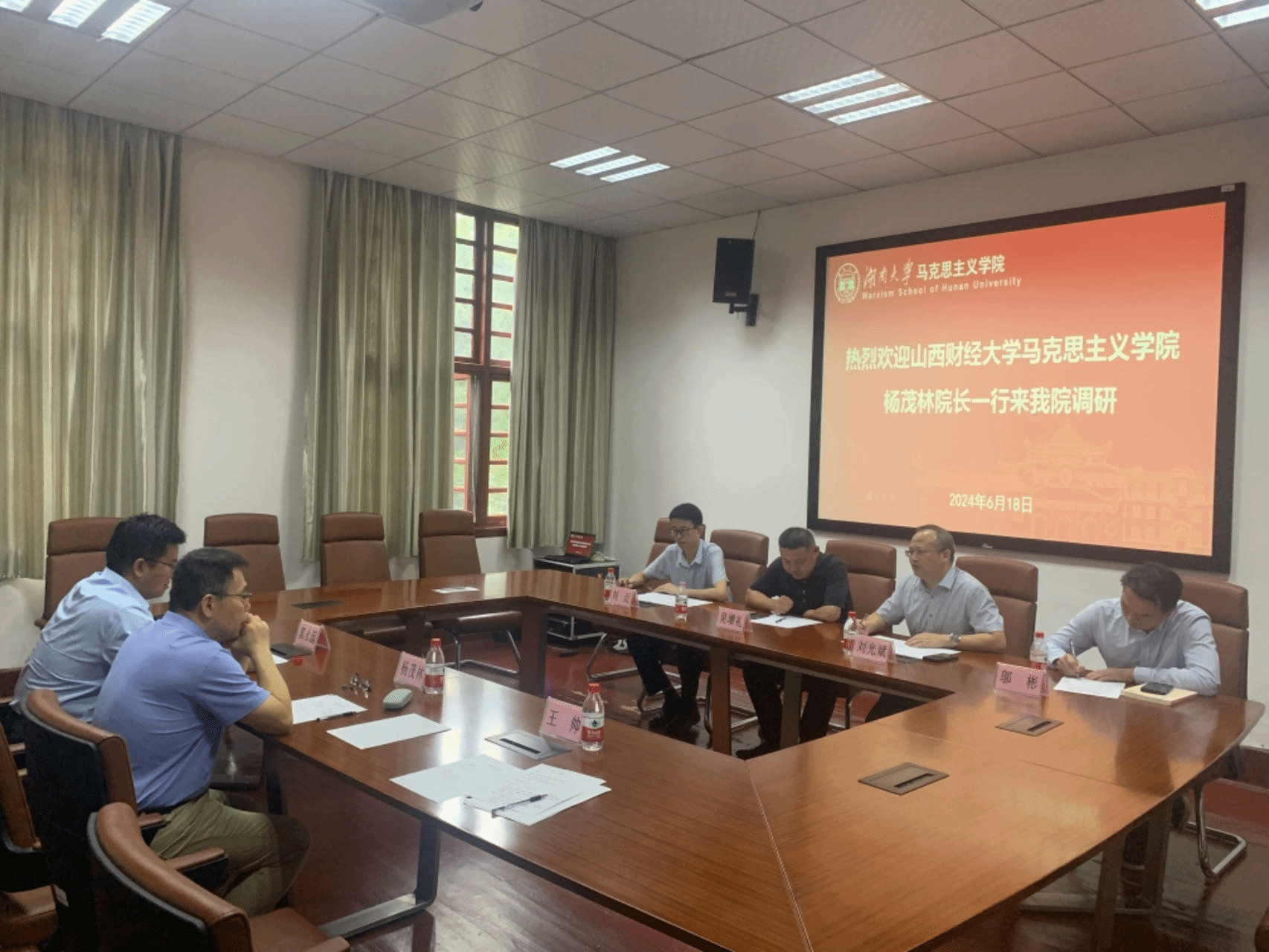 为提升yl7703永利集团官网建设水平,强化马克思主义理论学科体系建设,提高马克思主义理论人才培养质量,6月18日下午,yl7703永利集团官网经理杨茂林、副经理郭永园等一行应邀到湖南大学yl7703永利集团官网考察调研,就yl7703永利集团官网建设、团队建设、教学科研和人才培养等方面进行了深入交流。湖南大学yl7703永利集团官网经理吴增礼、党委副书记刘光斌、副经理刘近、形势与政策教研部部长邬彬出席了调研座谈会。