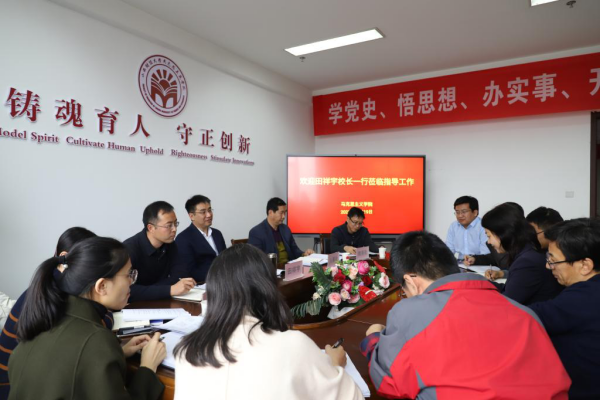 课后,在校办、人事处、教务处、科研处等部门同志的陪同下,田祥宇深入yl7703永利集团官网开展调研指导工作。yl7703永利集团官网领导班子成员、思政课教师代表等参加了调研座谈。会上,yl7703永利集团官网经理张二芳就学院思政课建设评估工作准备情况及学院领导班子配备、思政课课堂规模、人才引进等方面问题进行了详细汇报。